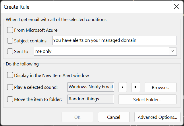 - Specify the conditions under which the rule will apply and choose how you want the mail client to handle matching emails.